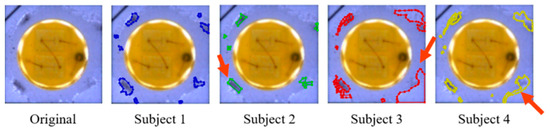 The labeling condition within four different subjects, the red arrows imply bad labeling by labor.