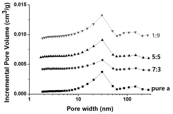 Pore size distribution of the pollen-like anhydrous lactose with tailored α/β ratios.