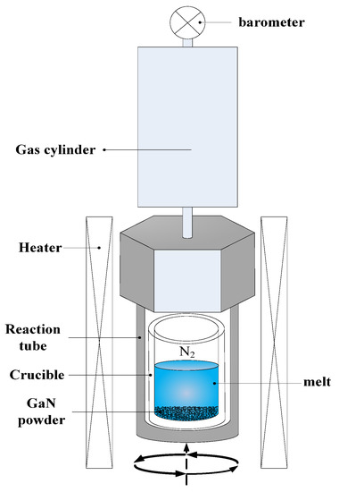 - von Dollen, P.; Pimputkar, S.; Alreesh, M.A.; Albrithen, H.; Suihkonen, S.; Nakamura, S.; Speck, J.S. A new system for sodium flux growth of bulk GaN. Part I: System development. J. Cryst. Growth 2016, 456, 58–66. [Google Scholar] [CrossRef] [Green Version]