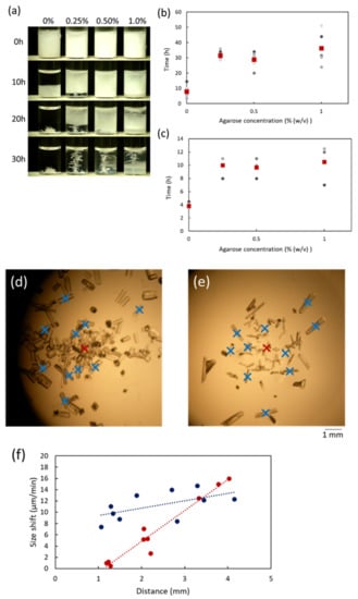- Sugiyama, S.; Hirose, M.; Shimizu, N.; Niiyama, M.; Maruyama, M.; Sazaki, G.; Murai, R.; Adachi, H.; Takano, K.; Murakami, S.; et al. Effect of evaporation on protein crystals grown in semi-solid agarose hydrogel. Jpn. J. Appl. Phys. 2011, 50, 025502. [Google Scholar] [CrossRef]