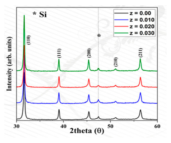 - Adnan, M.; Hussain, A.; Rahman, J.U.; Malik, R.A.; Song, T.K.; Kim, M.-H.; Kim, W.-J. Composition-dependent structural, dielectric and ferroelectric responses of lead-free Bi0.5Na0.5TiO3-SrZrO3 ceramics. J. Korean Phys. Soc. 2016, 68, 1430–1438. [Google Scholar]