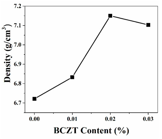 - Rahman, J.U.; Hussain, A.; Adnan, M.; Malik, R.A.; Kim, M.S.; Kim, M.-H. Effect of sintering temperature on the electromechanical properties of 0.945Bi0.5Na0.5TiO3-0.055BaZrO3 ceramics. J. Korean Phys. Soc. 2015, 66, 1072–1076. [Google Scholar] [CrossRef]