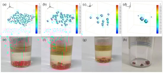 Figure 5 shows the simulation and experimental results when the cooling rate is 2 °C·h−1, 1.5 °C·h−1, 1 °C·h−1, and 0.5 °C·h−1. The upper part of each drawing shows the 3D simulation results, and the lower part shows the experimental results corresponding to the 3D drawing.