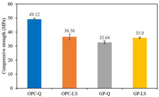 - The compressive strength of GP made with quartz is approximately 9% lower compared to GP made with limestone. However, the modulus of elasticity of GP concrete made quartz is higher than that of concrete made with limestone by approximately 21%.
