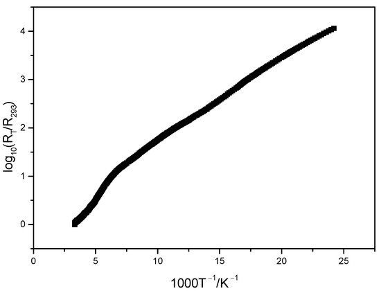 The electroconductivity measurements have revealed that compound 3 in the range of 41–195 K behaves like a dielectric. However, above 195 K, the delocalization of the positive charge disappears due to the numerous intermolecular S…S contacts and an inconspicuous dielectric–semiconductor structural phase transition occurs, caused by charge ordering: stacks contain both TMTSF molecules and TMTSF radical-cations. The room temperature electric conductivity σ293 = 5·10−3 Ohm−1cm−1 and activation energy Ea ≅ 0.04 eV (Figure 9). It should be noted that analogous salts (TMTSF)2[3,3′-Co(1,2-C2B9H11)2] and (TMTSF)2[3,3′-Fe(1,2-C2B9H11)2] were characterized by electroconductivity values σ293 of 15 and 0.1 Ohm−1cm−1, correspondingly [18,19].