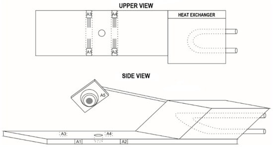 Schematic views of the hot-stage platform, where A1–A4 represent temperature sensors type LM35 and A5 represents the infrared thermometer type MLX90614.