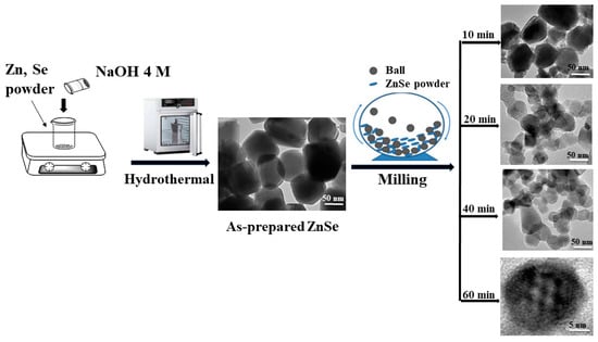 - Li, J.; Wang, M.; Huo, X.; Yao, X. Preparation and optical properties of dispersible ZnSe nanocrystals synthesized by high energy ball milling. Ceram. Int. 2008, 34, 1077–1080. [Google Scholar] [CrossRef]