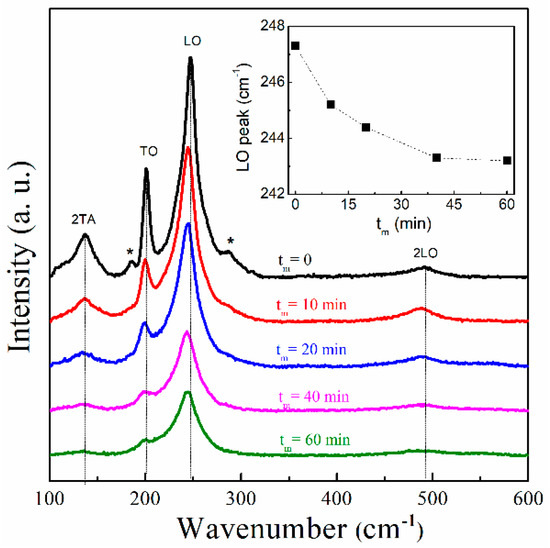 - Gao, Y.; Zhao, X.; Yin, P.; Gao, F. Size-Dependent Raman Shifts for nanocrystals. Sci. Rep. 2016, 6, 20539. [Google Scholar] [CrossRef]