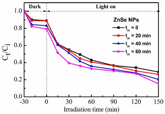 Hien, B.T.T.; Mai, V.T.; Thuy, P.T.; Hoa, V.X.; Chi, T.T.K. Structural, Optical, and Photocatalytic Properties of ZnSe Nanoparticles Influenced by the Milling Time. Crystals 2021, 11, 1125. https://doi.org/10.3390/cryst11091125