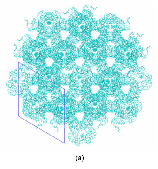 - Matthews, B.W. Solvent content of protein crystals. J. Mol. Biol. 1968, 33, 491–497. [Google Scholar] [CrossRef]