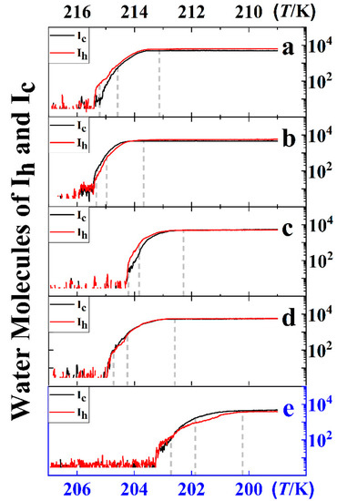 - Thurmer, K.; Nie, S. Formation of hexagonal and cubic ice during low-temperature growth. Proc. Natl. Acad. Sci. USA 2013, 110, 11757–11762. [Google Scholar] [CrossRef] [Green Version]