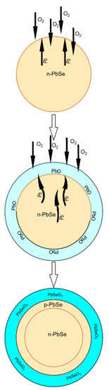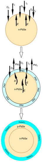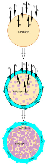 The oxidation process of the n-PbSe grain in the presence of I2 vapor (schematically).