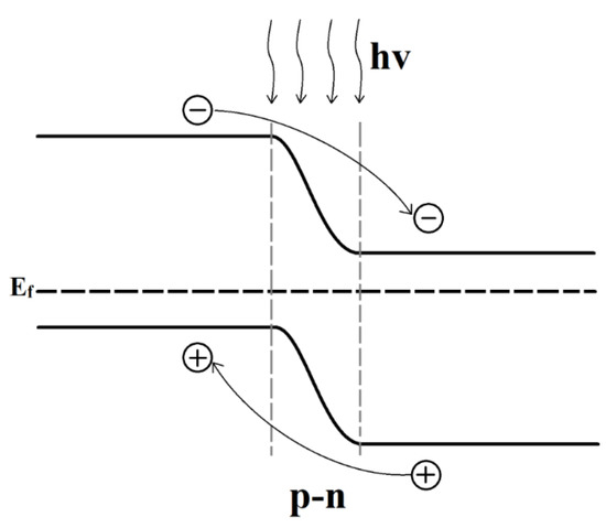 Energy diagram of the p–n junction region in photosensitive structure under illumination.