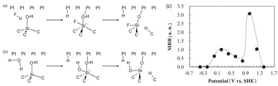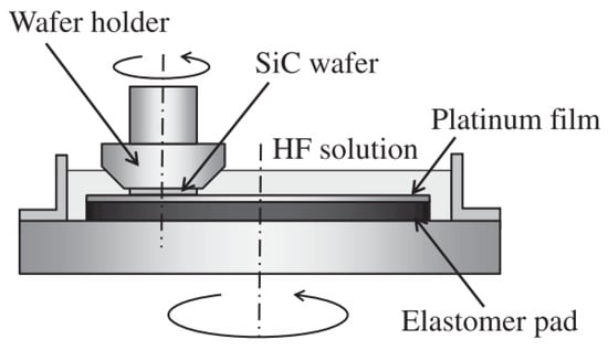 - Okamoto, T.; Sano, Y.; Tachibana, K.; Pho, B.V.; Arima, K.; Inagaki, K.; Yagi, K.; Murata, J.; Sadakuni, S.; Asano, H.; et al. Improvement of Removal Rate in Abrasive-Free Planarization of 4H-SiC Substrates Using Catalytic Platinum and Hydrofluoric Acid. Jpn. J. Appl. Phys. 2012, 51, 046501. [Google Scholar] [CrossRef]