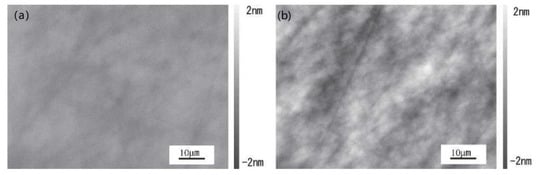 - Okamoto, T.; Sano, Y.; Hara, H.; Hatayama, T.; Arima, K.; Yagi, K.; Murata, J.; Sadakuni, S.; Tachibana, K.; Shirasawa, Y.; et al. Reduction of Surface Roughness of 4H-SiC by Catalyst-Referred Etching. Mater. Sci. Forum 2010, 645–648, 775–778. [Google Scholar] [CrossRef]