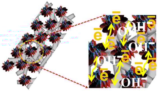 Three-dimensional active materials grown over porous nickel foam have many favorable characteristics, including corrosion resistance, high conductivity, abundant active sites for electrochemical reactions, and a high surface area, which make them suitable candidates for potential application in the field of energy storage. The synergism of the bimetallic oxides plays an important role in reducing the diffusion path length of the ions during the electrochemical reaction, which leads to the fast transportation of electrons between electrodes and electrolytes, which significantly enhances the overall capacitive performance of the electrodes (Figure 6) [40].