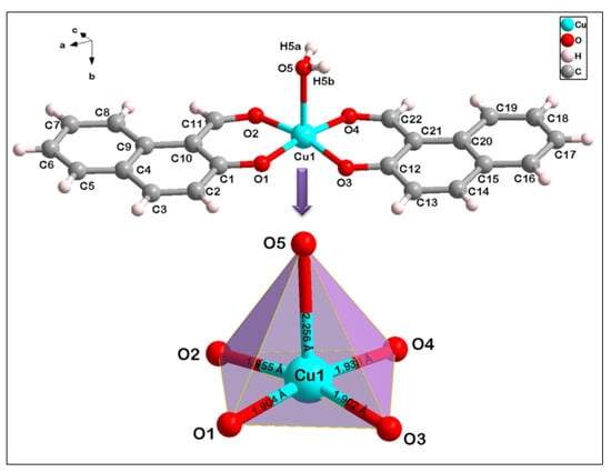 2.3. Synthesis of Aquabis (1-Formyl-2-Naphtholato-k2O,O′) Copper(II) (1)