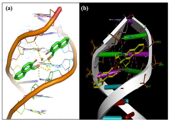 - Afzal, M.; Alarifi, A.; Hasnain, M.S.; Muddassir, M. Elucidation of DNA binding interaction of new Cu(II)/Zn(II) complexes derived from Schiff base and L-tryptophan amino acid: A multispectroscopic and molecular docking approach. Environ. Sci. Pollut. Res. 2021, 28, 44039–44050. [Google Scholar] [CrossRef] [PubMed]