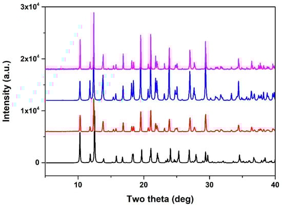 In a typical synthesis, CuBr/KBr-saturated solution and the ligand/ethanol were placed as bottom layer and upper layer, respectively, while acetonitrile has been introduced as an interlayer. Single crystals of 1 and 2 were obtained within a few days. Single crystal X-ray diffraction results show that the monoclinic space group of both 1 and 2 is P21. There are 2 formula units in the unit cell and all atoms are in general positions. The crystallographic data are provided in Table 1. In these anionic inorganic modules, all copper atoms are tetrahedrally coordinated to three bromine atoms and one ligand molecule. In these structures, the inorganic cores are anionic and the ligands are cationic and there are coordinative bonds connecting them. The Cu-N bond lengths are approximately 2.4 Å, similar to other CuBr-based hybrid structures containing coordination bonds. The possibility of halogen bonding in these types of compounds should also be considered [35,36]. The inorganic core of both compounds is identical, and after the halogen on the alkyl chain is changed from Cl to Br, the bond length increases from 1.795~1.841 Å to 1.926~1.949 Å, and the distance between the halogen and the copper increases from 8.7809~8.7828 Å to 8.8906~8.8974 Å. Therefore, with the replacement of halogen atoms, the distance between atoms increases, and the intermolecular forces weaken. Pure phase of powder samples of 1 and 2 have been obtained and their phase purity is confirmed by powder X-ray diffraction analysis (PXRD, Figure 4).