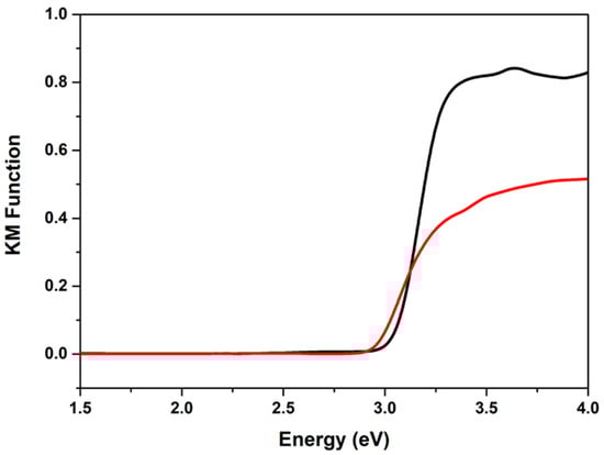 UV-vis absorption plots of 1 (black) and 2 (red).