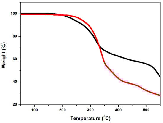 Thermal stability of the compounds was assessed by TG analysis (Figure 9). Decomposition of structures begins with loss of the organic ligands. The decomposition temperature (TD) was analyzed as 190 ℃ and 200 ℃ for compounds 1 and 2, respectively. The exposure of the sample to the atmosphere for weeks also shows no noticeable change in its emission intensity. Most of the previously reported copper bromide molecular compounds decompose below 60 ℃. The significantly enhanced thermal stability is the result of ionic bonding in the structures. Due to its ionic structure, both the compounds are soluble in a number of organic solvents, including dimethyl sulfoxide (DMSO), N, N-dimethylformamide (DMF), etc. Thin film of the organic-inorganic hybrid materials can be prepared by spin coating, dip coating, etc. [40,41]. The solubility in common organic solvents makes it easier to process high-quality films for optoelectronic devices.