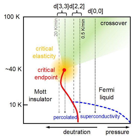 - Gati, E.; Garst, M.; Manna, S.R.; Tutsch, U.; Bartosch, L.; Schubert, H.; Sasaki, T.; Sculueter, A.J.; Lang, M. Breakdown of Hookes law of elasticity at the Mott critical endpoint in an organic conductor. Sci. Adv. 2016, 2, e1601646. [Google Scholar] [CrossRef] [Green Version]