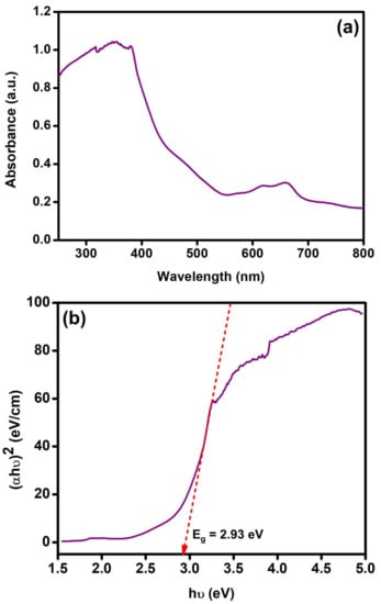 Nanomaterials have emerged as an inevitable part of modern science due to their disparate physical, chemical or biological properties with regard to their bulk composition. Nanomaterials are generally the particles with a particle size in the range of 1–100 nm. The surface activity of nanomaterials, which results in a greater surface to volume ratio, was one of the vital components which holds an important place in materials science research []. The applications of nanomaterials were not limited to materials science, but found profound use in medicines [,,], catalysis [,] and optical reactions [,]. Amongst the different nanoparticles, metal oxide nanoparticles have attracted considerable attention and have been attentively studied for the past few years due to their potential technological applications in various fields, including diodes [], detectors [], solar cells [,] and photocatalysis [].