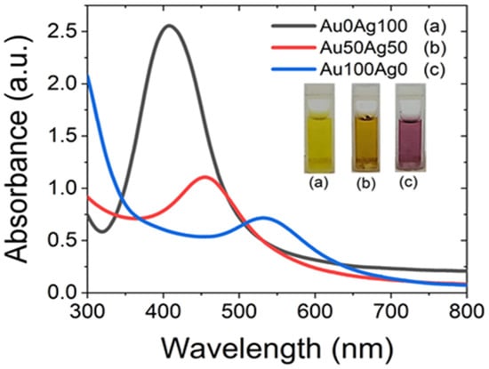 3.1. The Characterization of Au-Ag Colloidal Nanoparticles