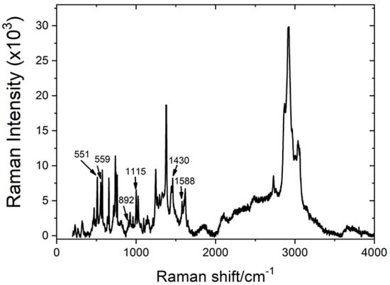 | Raman Shift (cm−1) | Raman Intensity (a.u.) | Peak Assignment [39] | |||