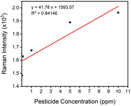 3.2. The Detection of Deltamethrin in a Brewed Tea Using Liquid SERS