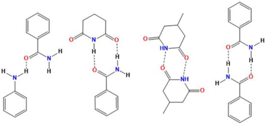 Examples of some probable supramolecular synthons that may be present in AMG-eutectic systems.