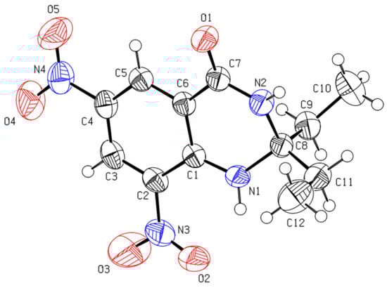 Crystal structure data of the compound 6,8-dinitro-2,2-diethyl-2,3-dihydroquinazolin-4(1H)-one (3a).