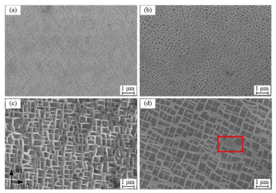 - Grosdidier, T.; Hazotte, A.; Simon, A. Precipitation and dissolution processes in γ/γ′ single crystal nickel-based superalloys. Mater. Sci. Eng. A 1998, 256, 183–196. [Google Scholar] [CrossRef]