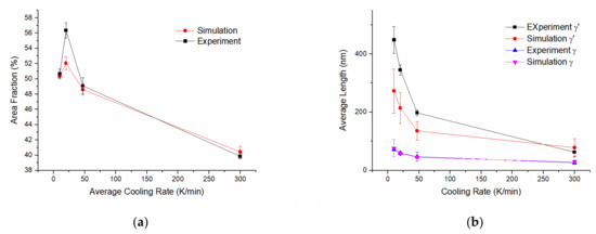 - Yang, M.; Zhang, J.; Wei, H. Influence of cooling rate on the formation of bimodal microstructures in nickel-base superalloys during continuous two-step aging. Comput. Mater. Sci. 2018, 149, 14–20. [Google Scholar] [CrossRef]