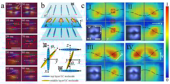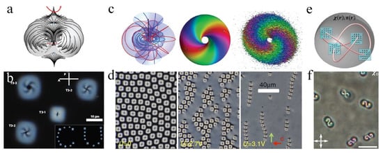 - Sohn, H.R.; Smalyukh, I.I. Electrically powered motions of toron crystallites in chiral liquid crystals. Proc. Natl. Acad. Sci. USA 2020, 117, 6437-6445. [Google Scholar] [CrossRef] [PubMed]