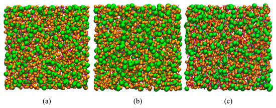 In this study, a cubic box of approximately 5000 atoms was built. The size of the box was determined by Equations (1) and (2).