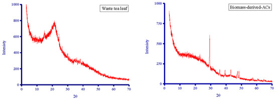 Briefly, 100 g of tea leaf waste were collected, cleaned, ground, and dried. The dried tea leaf waste was used to prepare the biomass-derived ACs by pre-carbonizing 5 g of tea leaf waste at 600 °C, and carbonizing the resultant black carbon material with KOH at 600 °C. After that, the Fe3O4 oxide was prepared according to a previously published protocol [19,20,21,22] by the co-precipitation of urea with FeCl3 metal salt.