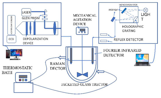 The changes of functional groups in precipitation during the reaction were detected by FTIR (Bio-rad FTS 6000), which scanned with wavenumber from 400 to 4000 cm−1; Raman analysis (RFS 100/S) used a 1064 nm Nd-YAG laser and the scanning step was 2 cm−1 with a 50 kHz scanning frequency, utilizing fiber-coupled probe optic technology for in situ monitoring. This system was equipped with a probe head for direct insertion or non-contact sampling.