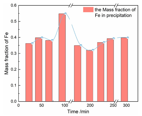 The mass fraction trend of Fe in precipitation at different reaction time.
