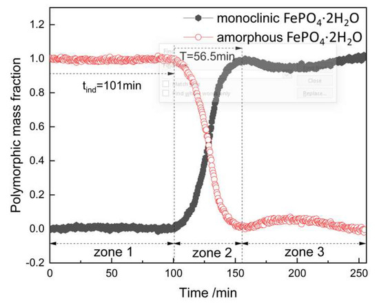 In situ polymorphic mass fraction profiles of monoclinic and amorphous FePO4·2H2O through the solvent-mediated transformation process.
