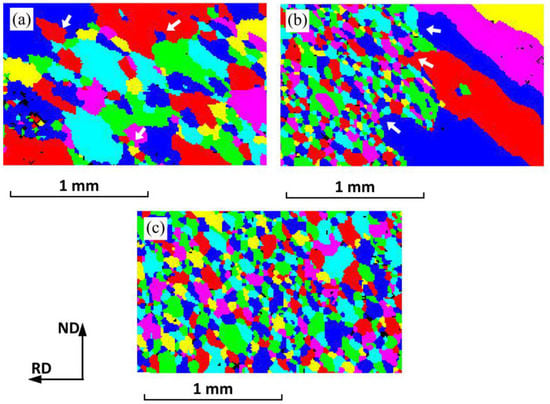 - Rios, P.R.; Gottstein, G. Texture evolution during normal and abnormal grain growth in an Al–1 wt% Mn alloy. Acta Mater. 2001, 49, 2511–2518. [Google Scholar] [CrossRef]