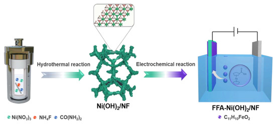 Schematic diagram of the preparation of FFA-Ni(OH)2/NF.