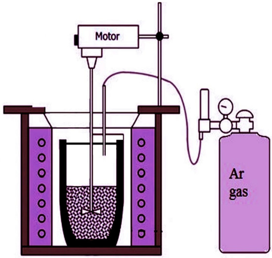 First of all, AA1100/5 Wt. % TiC composites were formed by the compo-casting process. The diagram of the experimental sequences utilized in the stir casting is shown in Figure 1.