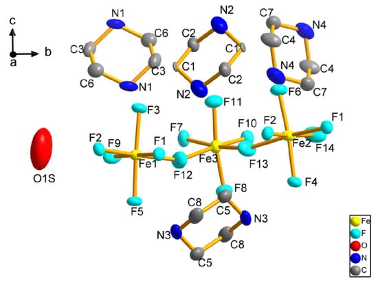 Crystallographic details (at 173 K) for the three new compounds are given in Table 1. Selected bond lengths are given in Table 2. All three structures incorporate diprotonated piperazine (H2pipz) as a countercation to the anionic iron(III) fluoride layers/chains. In each case, the valence state of the iron is confirmed by bond-valence calculations (Table 2) [25].