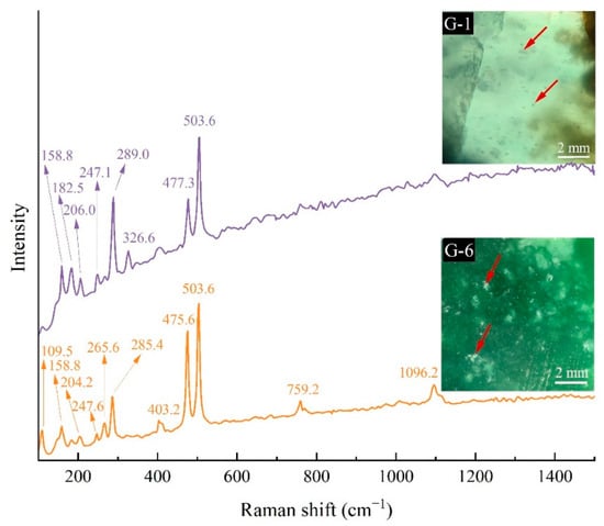 Raman spectra of white albite in the Guatemalan samples (G-6, G-1).