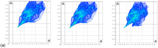 (a) the fingerprint plots of the cations in I, II, and III from left to right; (b) fingerprint plots of the anions in I, II, and III in the same order as the cations.