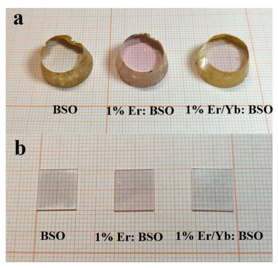 - Nizhankovskyi, S.V.; Kozlovskyi, A.A.; Kovalenko, N.O.; Vovk, O.O. Optical and luminescence properties of Er, Yb: YAG crystals grown by horizontal directional crystallization method. Funct. Mater. 2019, 26, 35–40. [Google Scholar] [CrossRef] [Green Version]
