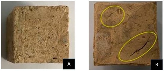 Figure 2 shows the physical observation of sintered kaolin-GGBS geopolymer samples with different heating rates and holding times. As can be seen on the surface of samples A, it has no major cracking when sintered at 2 °C/min with 2 h of holding time while B has significant cracking due to internal stresses when the drying shrinkage is too severe after sintered at 4 °C/min with 3 h of holding time. Another problem with drying is the amount of energy necessary to evaporate water. Furthermore, due to the use of a heating rate of 4 °C/min during the second step of sintering with 3 h of holding time, sample B had surface cracking. This demonstrates that a longer holding time and a faster heating rate applied pressure to the sample, causing substantial cracking.