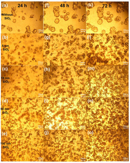 3.1. Effect of SNP Sizes on Lysozyme Crystal Morphology