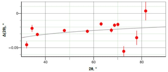 | 2Θ [°] | d [Å] | FWHM, [°] Full Width at Half Maximum of the Peak | Crystallite Size, [Å] | |